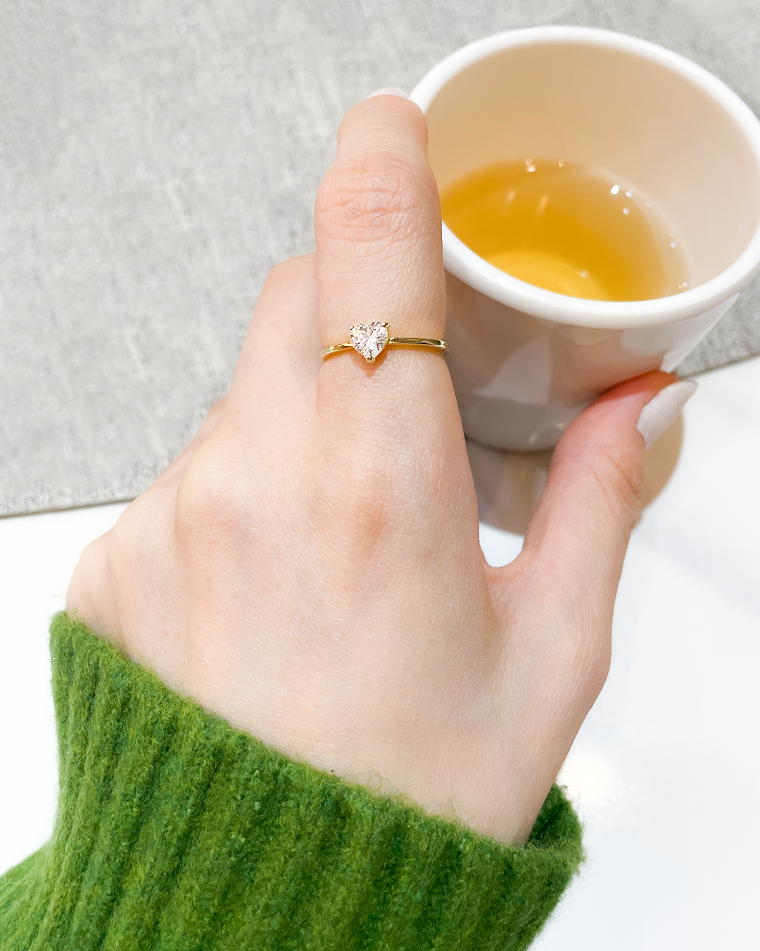 Stand out from the crowd with our Dionne ring. Featuring a heart-shaped stone, this simple yet elegant ring adds a touch of sparkle to your ensemble.